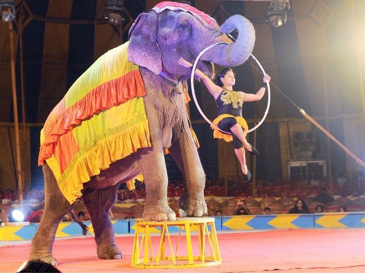 Elephants in entertainment are further "trained" (often using physical violence) to perform tricks for us, and to carry us on their backs that are not designed for heavy loads.