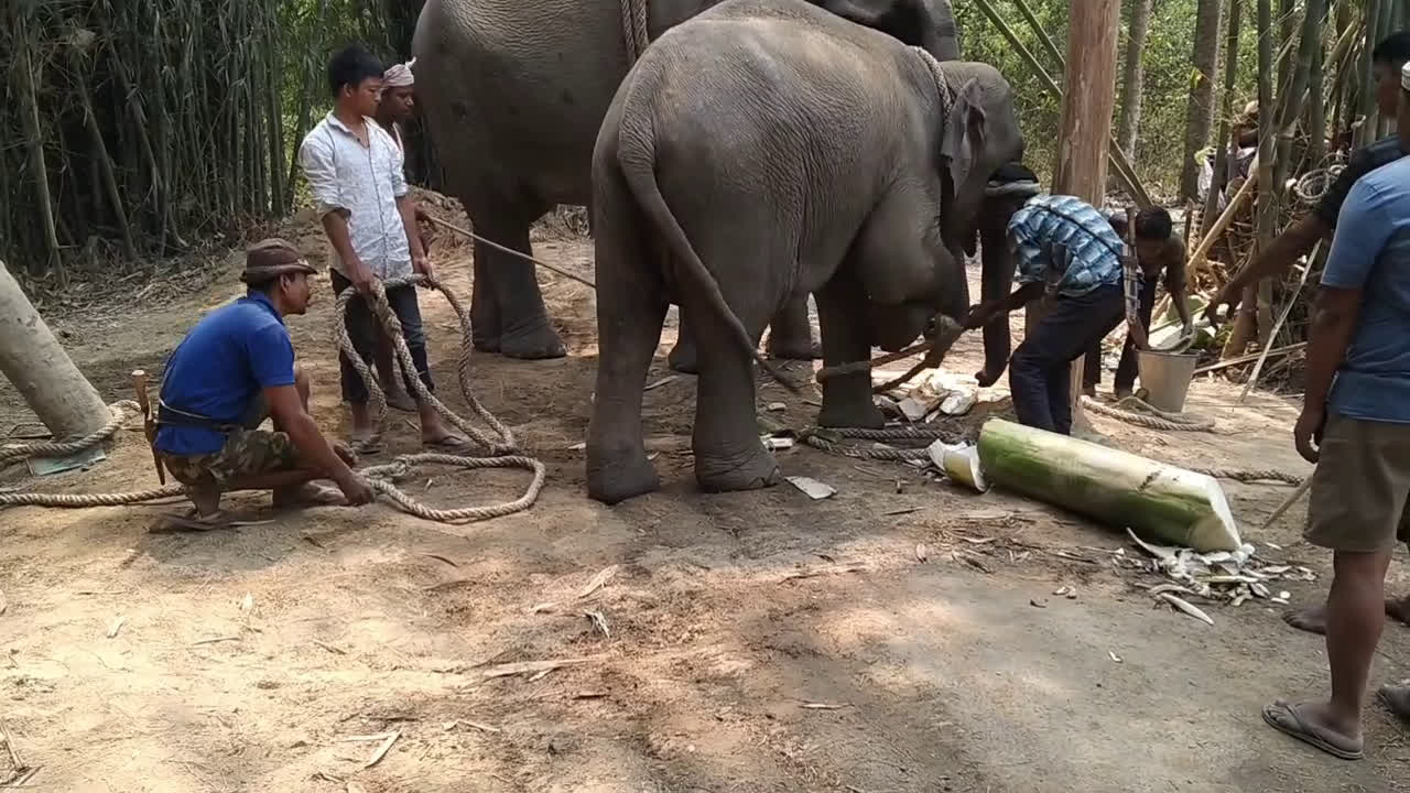 Baby elephants are captured by first separating them forcibly from their mother, then being tied up and transported to a "training school". Here they are beaten and starved until they are totally dependent on their human keepers for the rest of their lives.