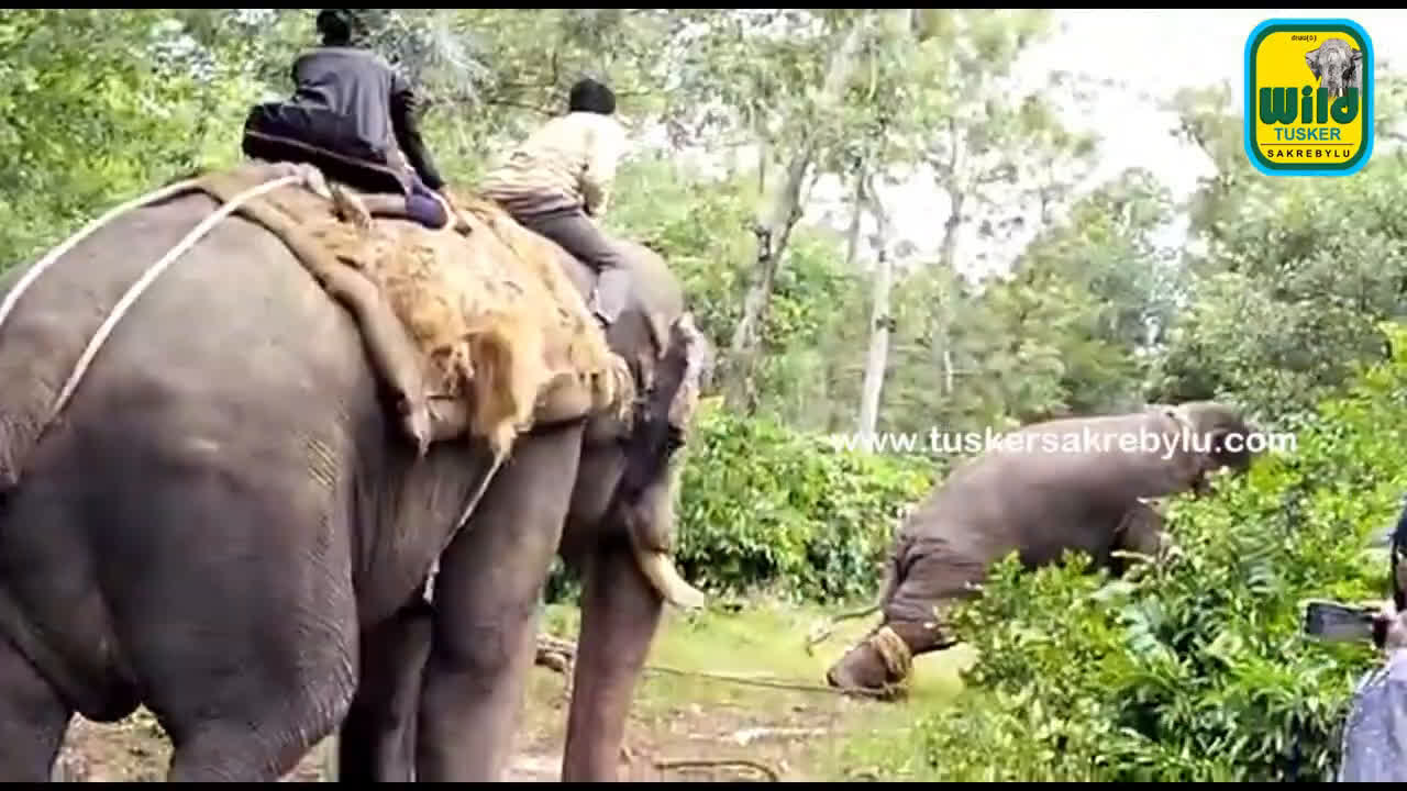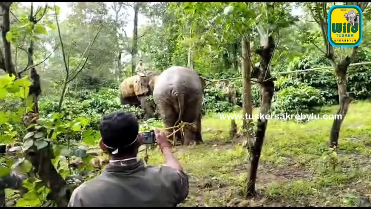 Snapshots from a video describing the capture of a wild elephant at Sakaleshpura, Karnataka. Tame (trained) elephants are used to lure wild elephants into a trap where they are then tied up, and drag-marched to the "training school".